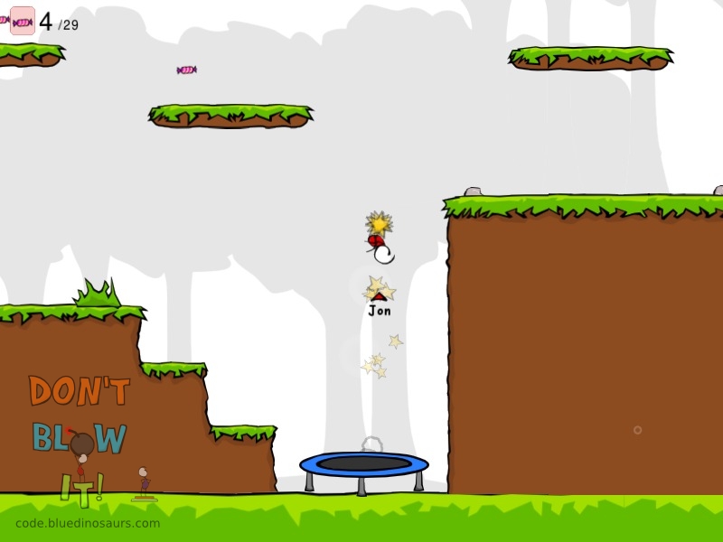 The collectables are now animated. The star collectable spins left and right. I added candy collectables to replace the stars in the first demo level. They seem to make more sense in a “party” setting. The candy bobs and sways, almost in time with the music.
