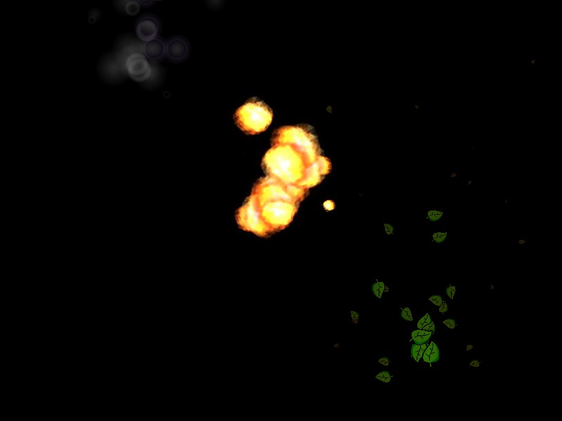 Of course the goal was to bring the particle engine into Don’t Blow It. To do that, I needed to break the game for a while… The camera system was all done explicitly by passing around scroll and scaling parameters to all of the drawable objects. That is fine if you have to do it (and can keep track of it all), but since changing to OpenGL, I’ve been wanting to pull it all out and make it right. That’s what I had ahead of me. There was no way I was going to pollute my beautiful new particle engine with extra parameters all over the place just to pull them out again later, so I started that very important refactoring of the camera code. I used SDL_gpu’s camera system (an abstraction over OpenGL’s view matrix transforms) to replace the old methods I had used since the game’s 2D framebuffer days.